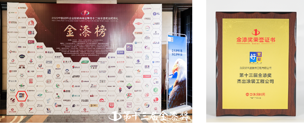 2022年6月8日,由中外涂料網(wǎng)主辦的2022中國涂料企業(yè)經(jīng)銷商峰會暨第十三屆金漆獎頒獎典禮,在佛山順德喜來登酒店盛情開啟。好來屋受邀參加盛典并獲得第十三屆金漆獎“杰出涂裝工程公司”。