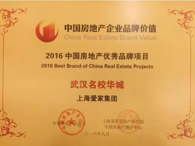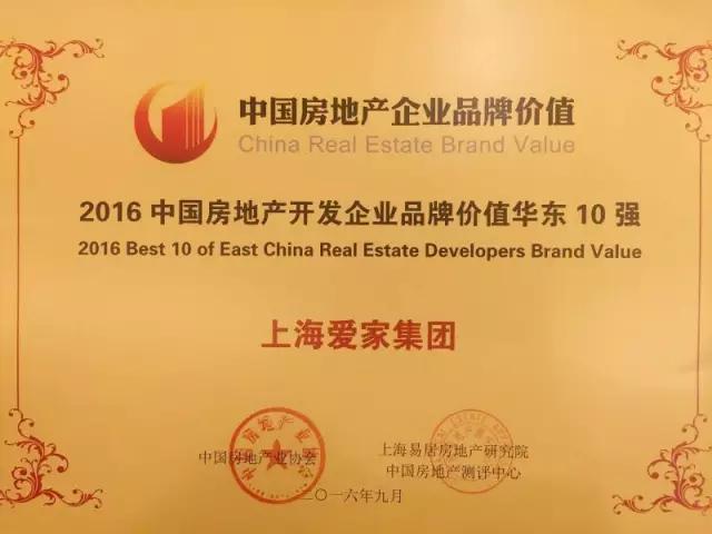 熱烈祝賀上海愛家集團榮獲2016中國房地產(chǎn)開發(fā)企業(yè)品牌價值華東10強、由我司承建的外墻涂料項目-武漢愛家名校華城項目榮獲“2016中國房地產(chǎn)優(yōu)秀品牌項目”。