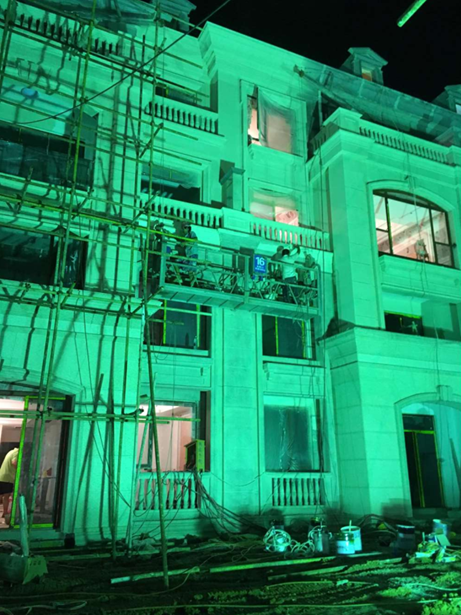 項(xiàng)目事跡:為配合甲方對(duì)外營(yíng)銷展示,在8月份,室外溫度高達(dá)40°酷暑下,我司工人連夜奮戰(zhàn)17小時(shí),中暑工人數(shù)達(dá)10余人,5天搶下別墅外墻涂料工程,使項(xiàng)目如期對(duì)外開(kāi)放。