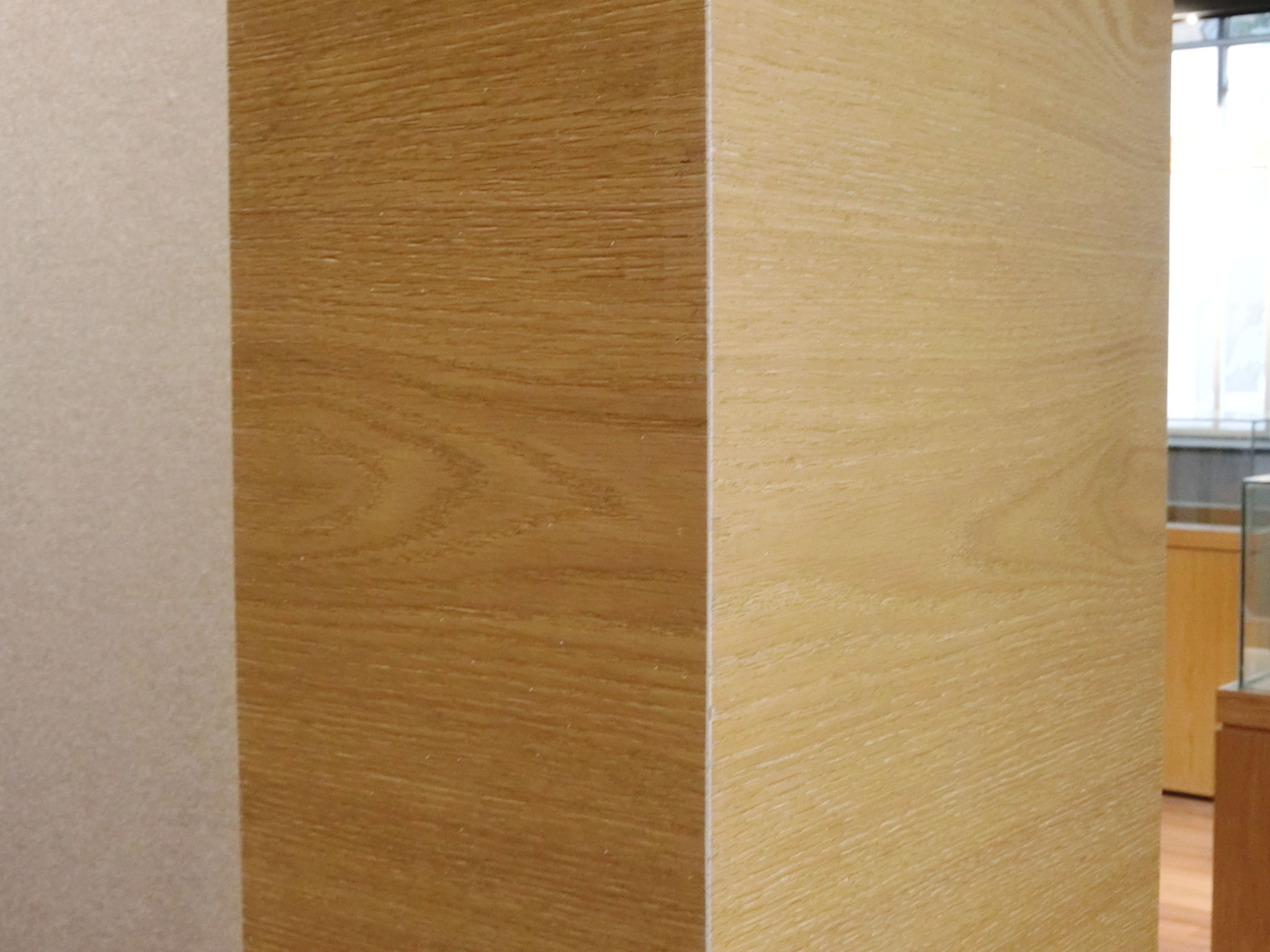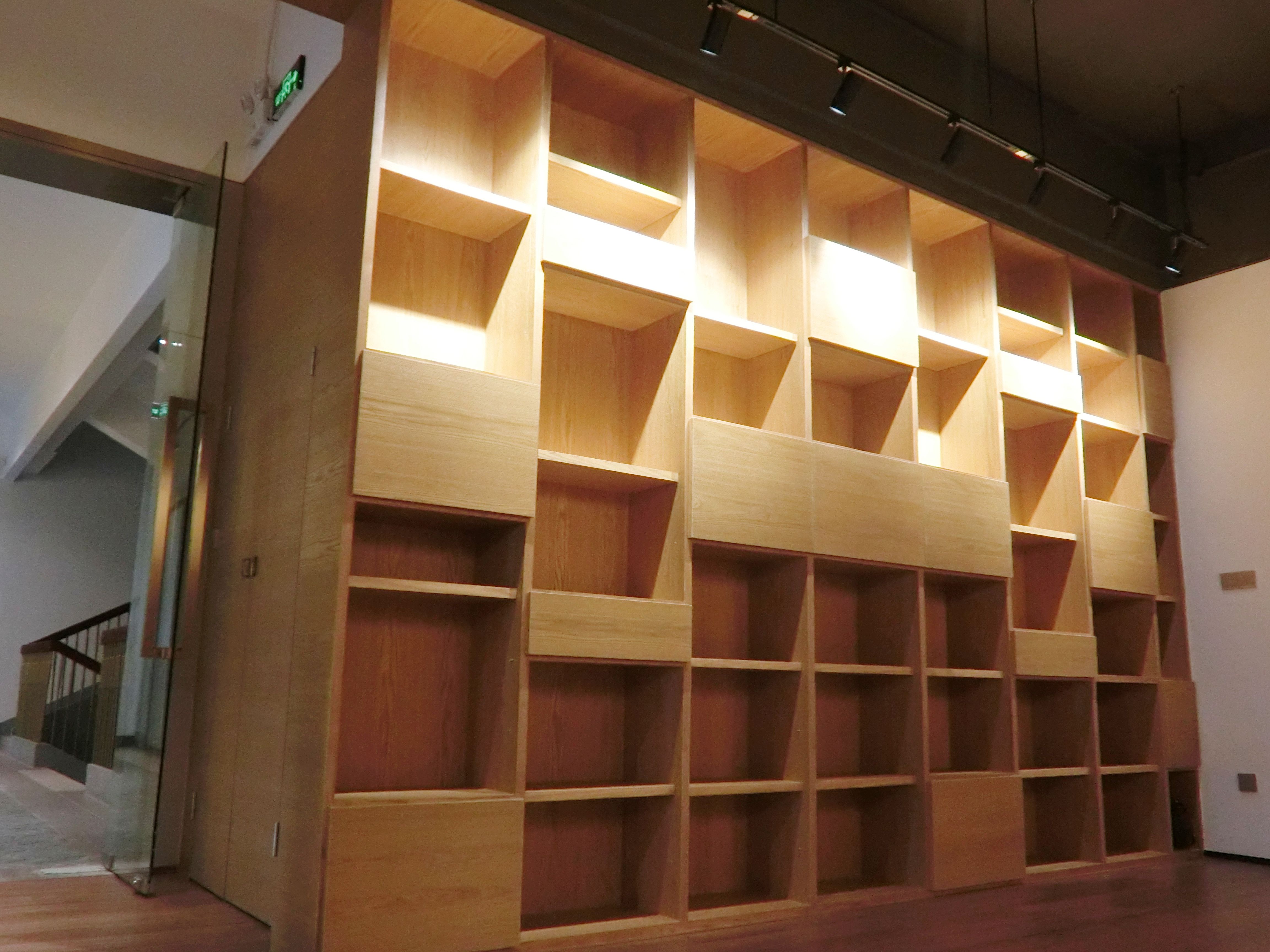 校史館整體裝飾面積約450㎡,風(fēng)格中式簡約、沉穩(wěn)大氣,既有時代氣息,又不失濃厚的學(xué)校文化氛圍。施工作業(yè)中,所有的木飾面、柜子,均采用成品規(guī)格木飾面板進行現(xiàn)場人工拼裝制作、安裝,使用的材料面板達近千張,這無疑給項目品質(zhì)管理帶來了挑戰(zhàn)。