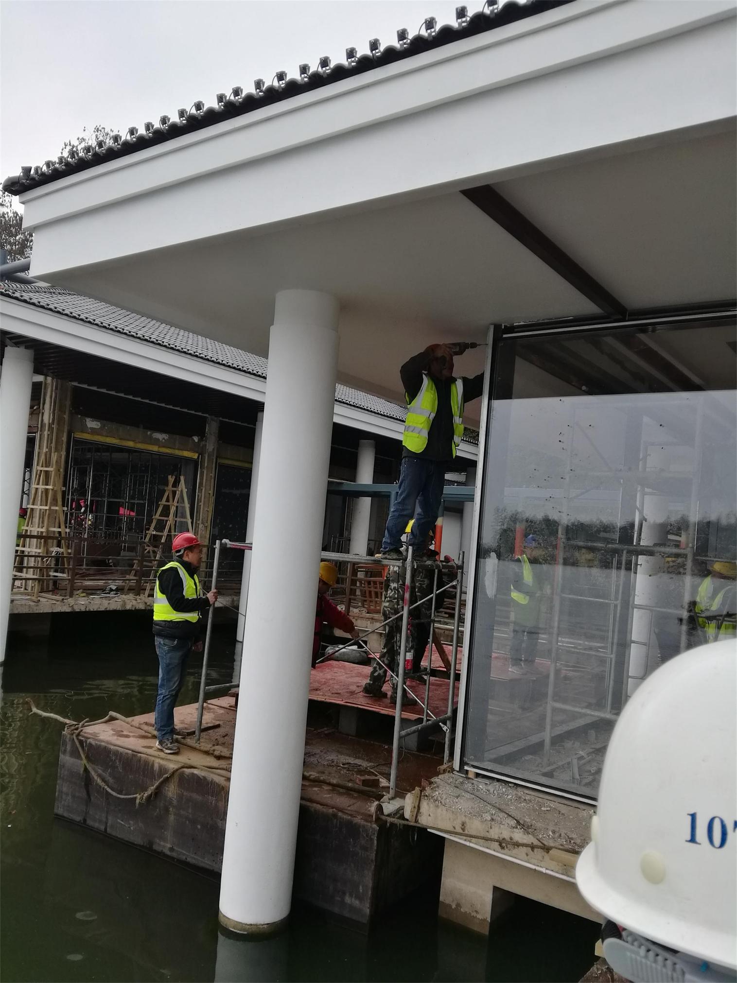 東湖賓館海光水榭為水上項(xiàng)目,根據(jù)項(xiàng)目整體時(shí)間節(jié)點(diǎn)安排,我們的玻璃進(jìn)場(chǎng)時(shí),水榭連廊已施工完成,超大板玻璃已無(wú)法通過(guò)陸路方式進(jìn)行轉(zhuǎn)運(yùn),所有玻璃只能通過(guò)水上運(yùn)輸?shù)姆绞,轉(zhuǎn)運(yùn)至指定位置。