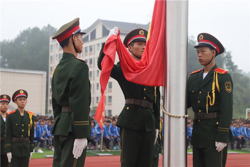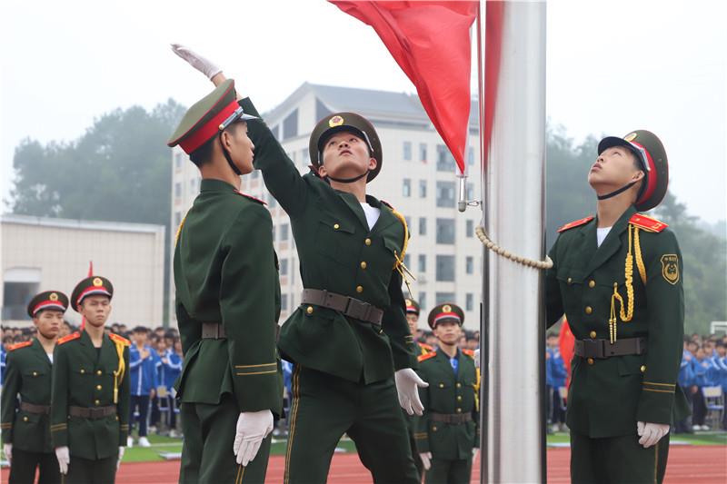 在雄壯的國(guó)歌聲中,五星紅旗冉冉升起。全體師生的目光追隨著緩緩上升的五星紅旗,堅(jiān)定的眼神里是驕傲,是自豪,是未來(lái),是希冀。