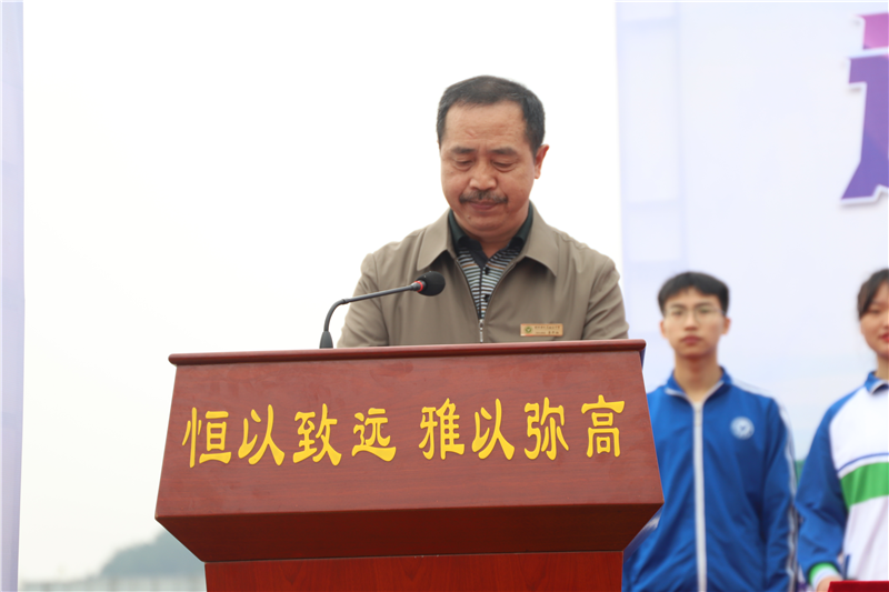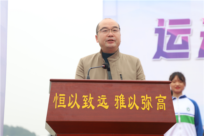 教育局副局長(zhǎng)楊清輝先生講話,他強(qiáng)調(diào)參加體育運(yùn)動(dòng)不僅僅是一場(chǎng)體能、技術(shù)、水平的較量,是對(duì)同學(xué)們的生活品位、精神品格、意志品質(zhì)的一次大檢閱。運(yùn)動(dòng)不僅僅是為了健康,它更是充滿靈動(dòng)的生活時(shí)尚,是一種充滿韻律的生活情趣,是一種充滿活力的生活態(tài)度。
